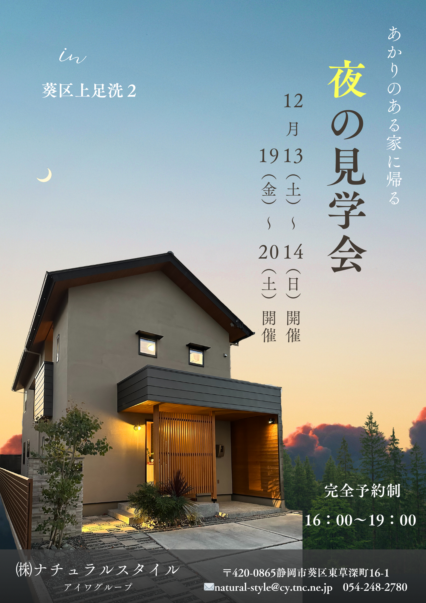 リート上足洗2丁目モデルハウス 夜の販売会 12月13日(土)・14日(日)・19日(金)・20日(土)開催